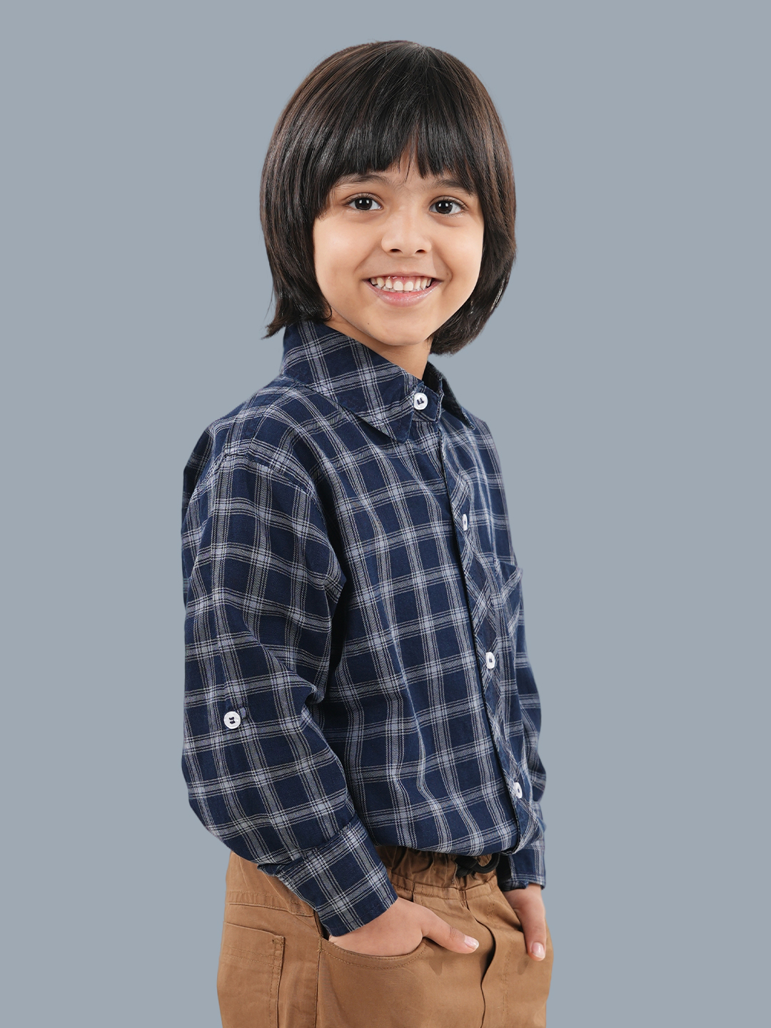 Tailored in a comfortable fit, this boys long sleeve shirt allows easy movement while maintaining a neat appearance. Pair this boys stylish shirt with jeans or trousers for a smart casual look. A must-have boys fashion shirt, this check pattern shirt for boys blends comfort, durability, and classic style effortlessly.