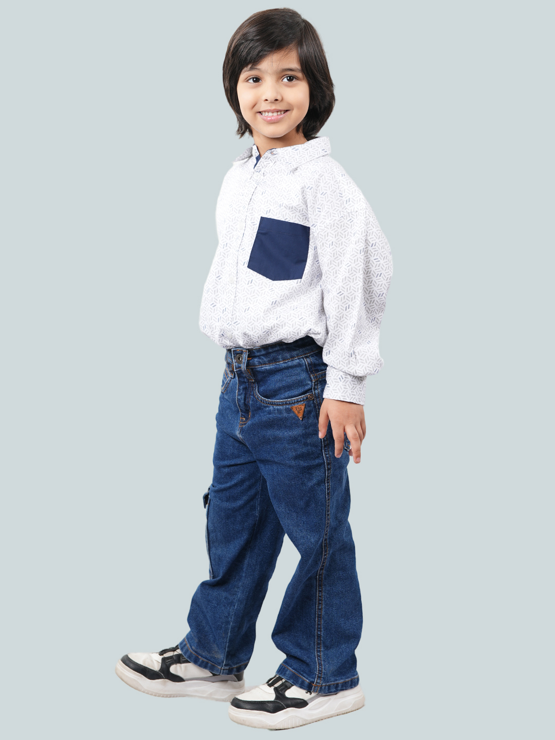 Designed with a regular fit, this boys stylish shirt offers ease of movement, making it perfect for active days. The classic collar, button-down front, and neat finish make it suitable for both casual outings and semi-formal occasions. Whether paired with jeans, shorts, or trousers, this contrast pocket shirt for boys delivers a cool and polished look.
