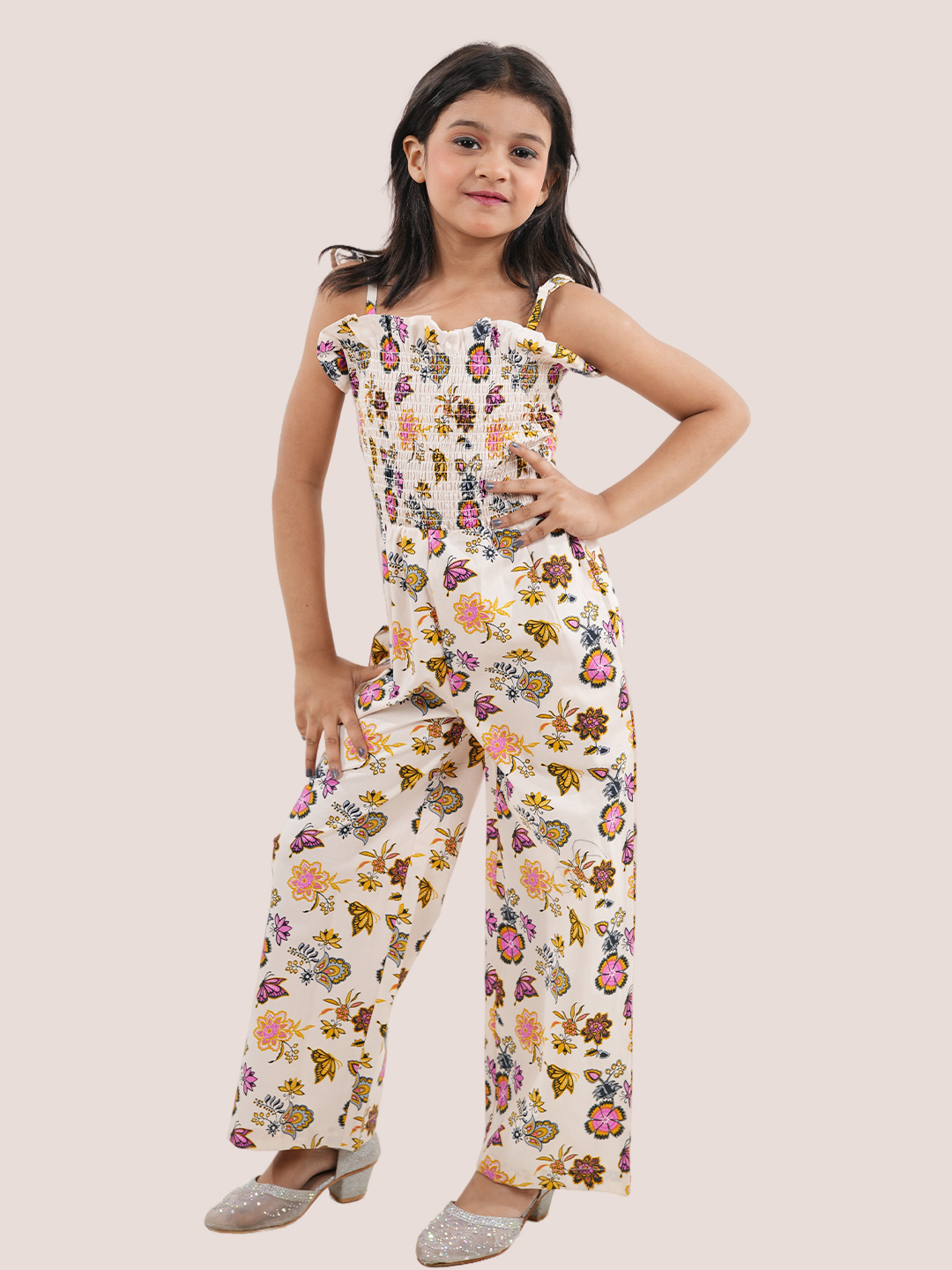 Keep your child comfortable and stylish with this girl`s floral print basic jumpsuit, featuring a soft fabric feel and a relaxed fit for all-day ease. Designed with a cheerful floral pattern and a simple, practical silhouette, it`s perfect for playtime, outings, and casual everyday wear while ensuring freedom of movement and effortless charm.