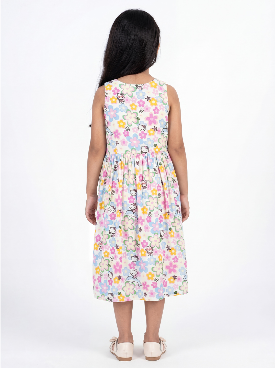 Girl's Floral Print Pure Cotton Fit & Flare Dress