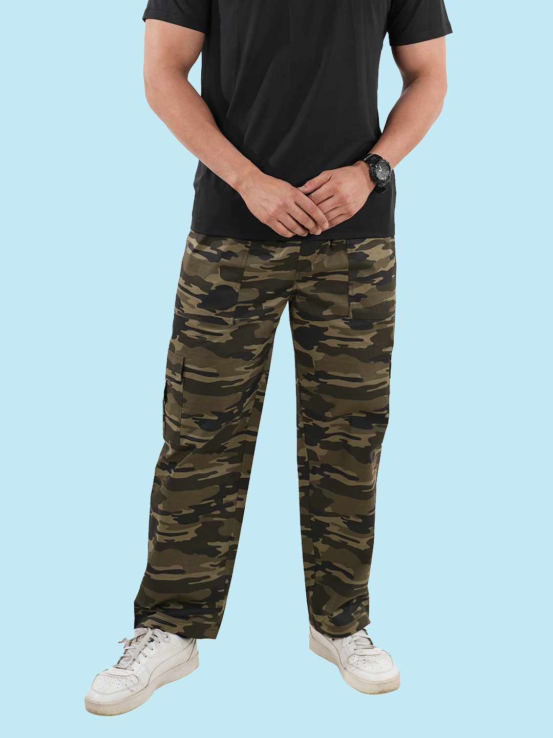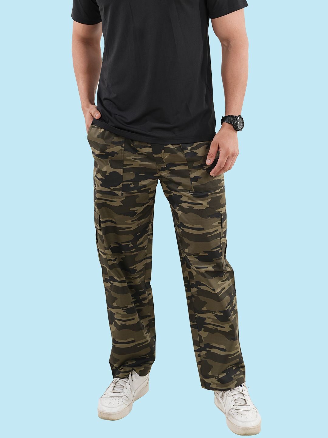 Upgrade your casual and active wardrobe with these men`s camouflage cargo trackpants, crafted for comfort, flexibility, and utility. Designed with a modern camouflage pattern and multiple cargo pockets, they offer a relaxed fit for easy movement and all-day comfort. Perfect for workouts, travel, or everyday casual wear, these trackpants combine functionality with a bold street-style look.